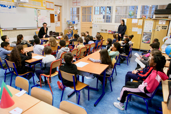 MARYLIN MATHON, le 5 février 2024 - Rencontre dans la classe CP de Elisa KRYWONIS, école 61 rue de la Villette 75019 Paris / Photos © Milena Donato